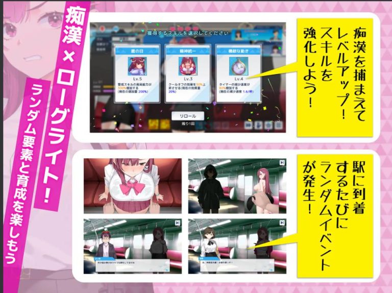 这是一款以”战斗情色”为核心玩法的游戏,玩家将扮演潜入调查的女搜查官莉娜,与各类痴汉周旋。通过拘捕痴汉积累经验升级,随着游戏轮回推进,女主角会逐渐强化能力。需要巧妙防御骚扰行为,最终逮捕潜伏在关卡深处的BOSS!
