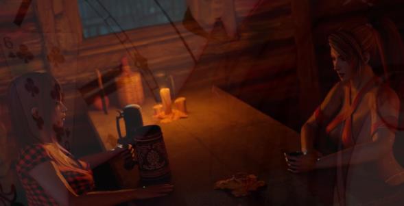 萨姆斯和惠乃果来到一间乡下的酒吧里喝酒。